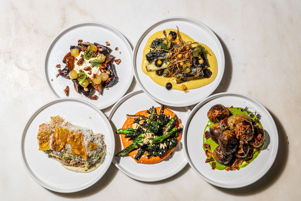 Soy glazed oyster mushroom, cucumber pickles, harissa roasted chickpeas, dukkha spices (Served with wood-fired flat bread)